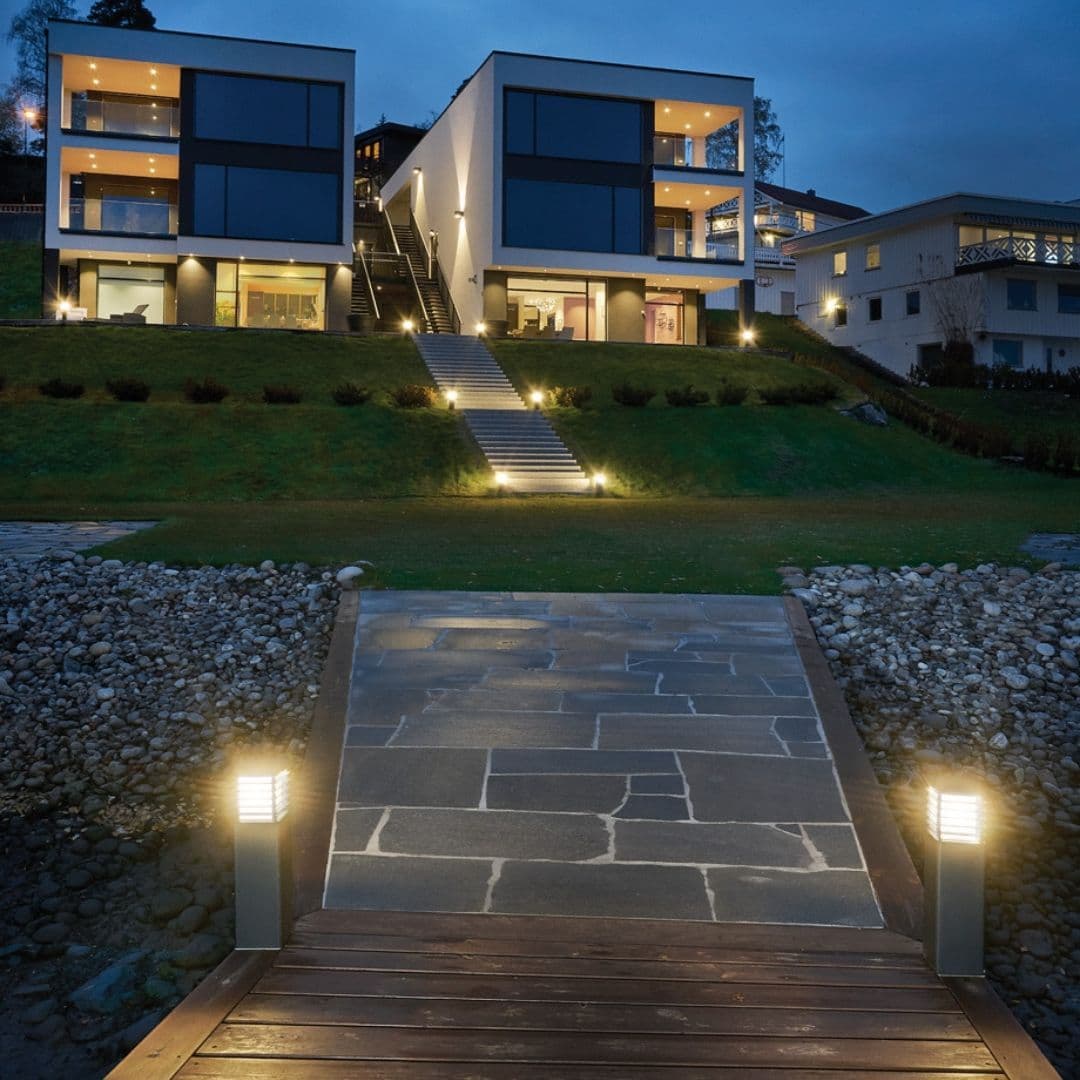 Les systèmes de sécurité extérieure comprennent des détecteurs de mouvement et un éclairage LED performant pour protéger la maison contre les intrusions.