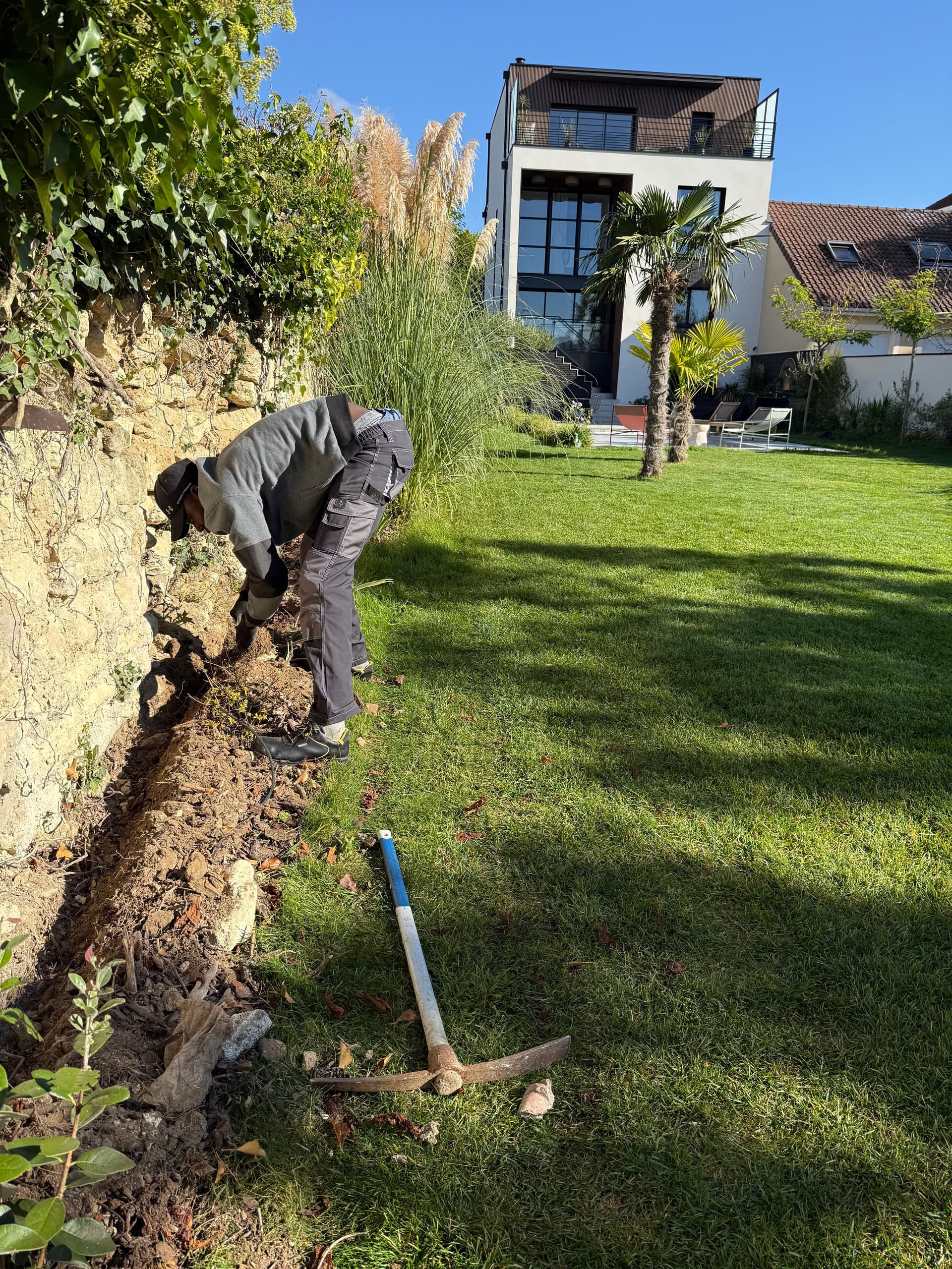 Une fois le plan validé, les techniciens MP ELEC ont procédé à la préparation des tranchées et cheminements électriques extérieurs.